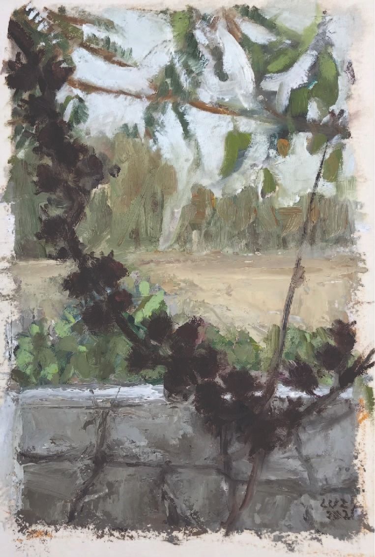 בתערוכה "102 ק"מ" של האמנית עופרי מרום, באוצרותה של אפי גן, מוצגת סדרת עבודות אשר נעשתה בתקופה קצובה ואינטנסיבית. ציורי דרך שאורכה 102 ק"מ מכפר-סבא לבאר-שבע, מרחק בין עיר מגוריה של עופרי למגורי בתה בהיותה סטודנטית בבאר-שבע. עבודות קטנות המאפשרות מבט אינטימי ב"פיסות נוף" שנקטפו לכאורה מן החוץ, עבודות השאובות מן הזיכרון, קשורות אל החוץ אך נעשות בתוך הסטודיו, מהדהדות את הקשר פנים/חוץ.