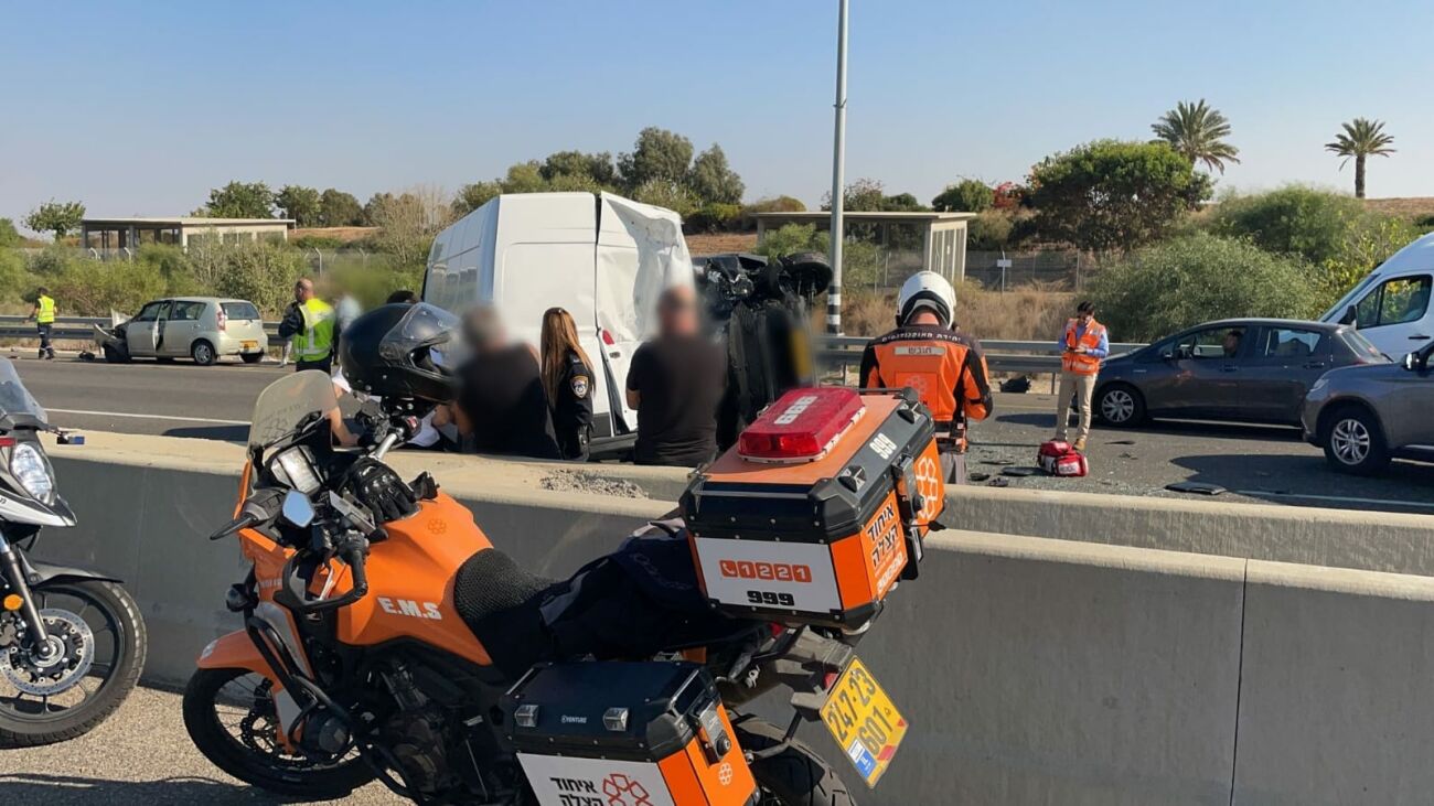 "עומסי תנועה נוצרו עקב אופי התאונה. לאחר הסיוע הראשוני בזירה אחד הפצועים במצב קל התפנה איתנו באמבולנס איחוד הצלה למרכז הרפואי אסותא באשדוד".