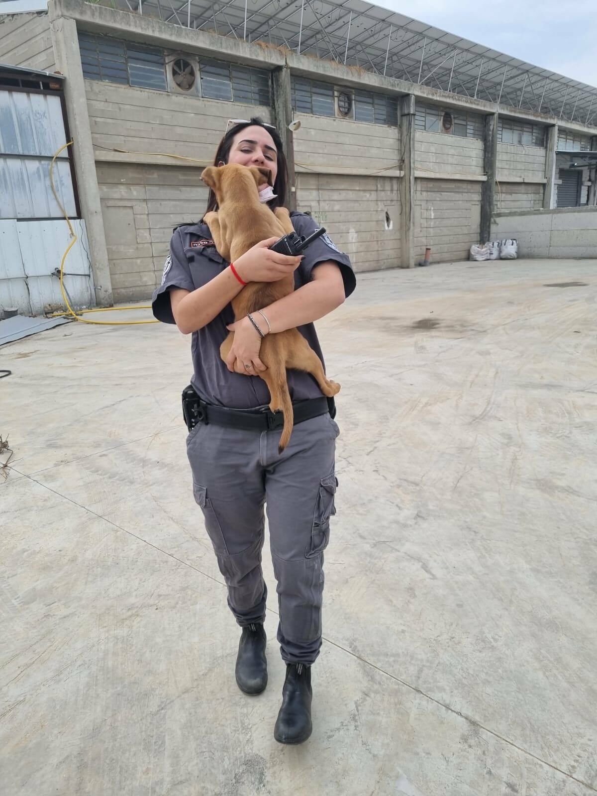 רפי מלס והילי מלכה מהשיטור העירוני יבנה חיצו כלב ממכלאה בו שהה ללא אוכל ומים