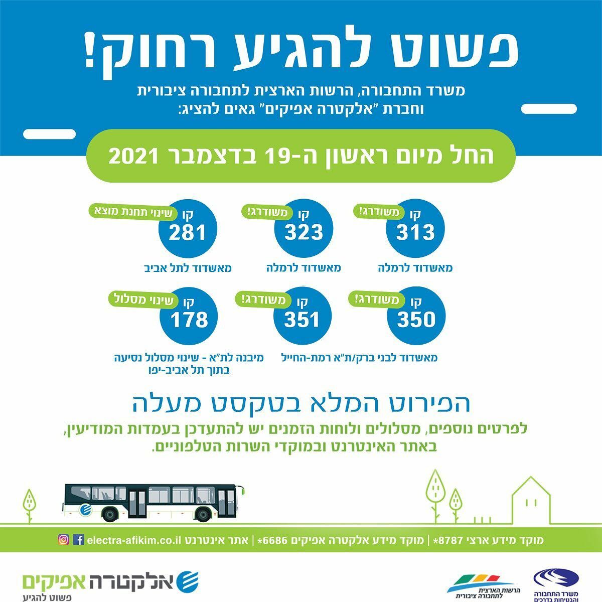 לידיעת ציבור הנוסעים קו 349 יפעל בימי שישי ומוצ"ש בלבד.