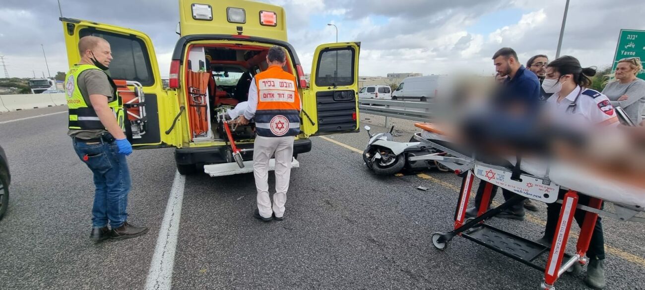 תאונה ליד גשר יבנה בין 2 אופנועים למשאית