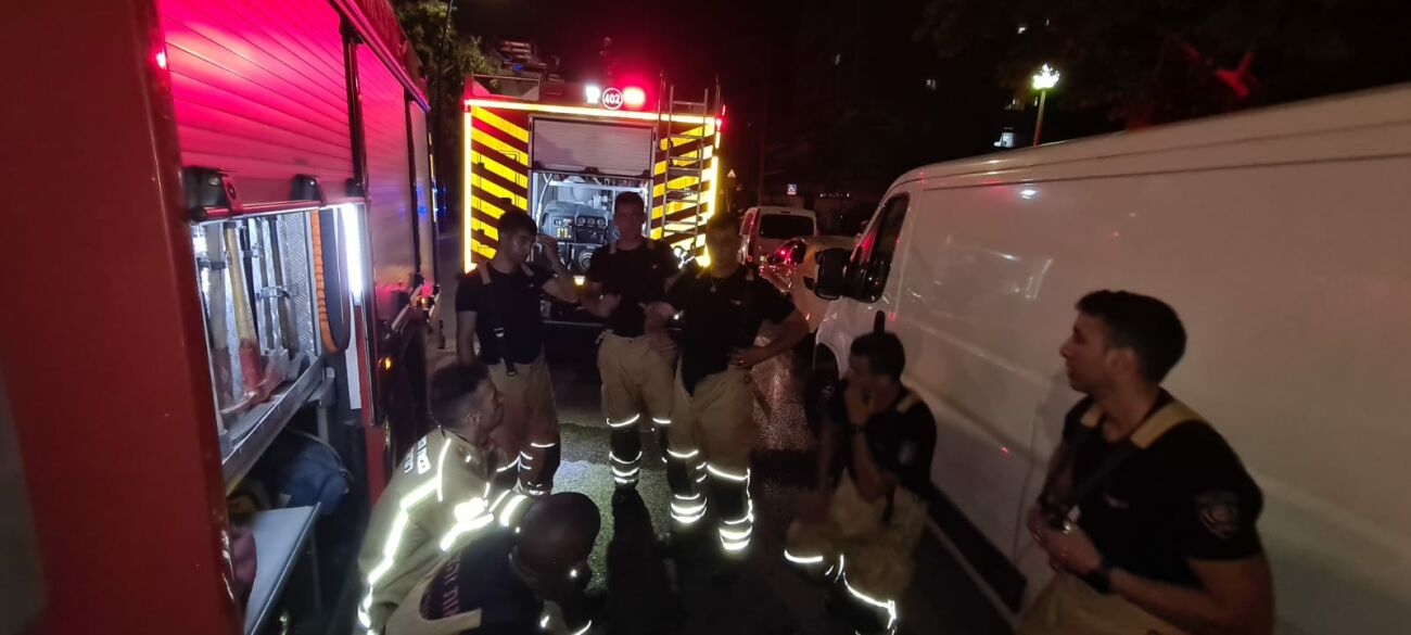 הצוותים חדרו למבנה אפוף העשן, חילצו את הדיירים שביקשו להתפנות בעקבות העשן הרב שהחל להיכנס לבתים, והחלו בפעולות כיבוי מוקד הבעירה, סריקה לאיתור לכודים ושחרור העשן הרב מתוך המבנה.