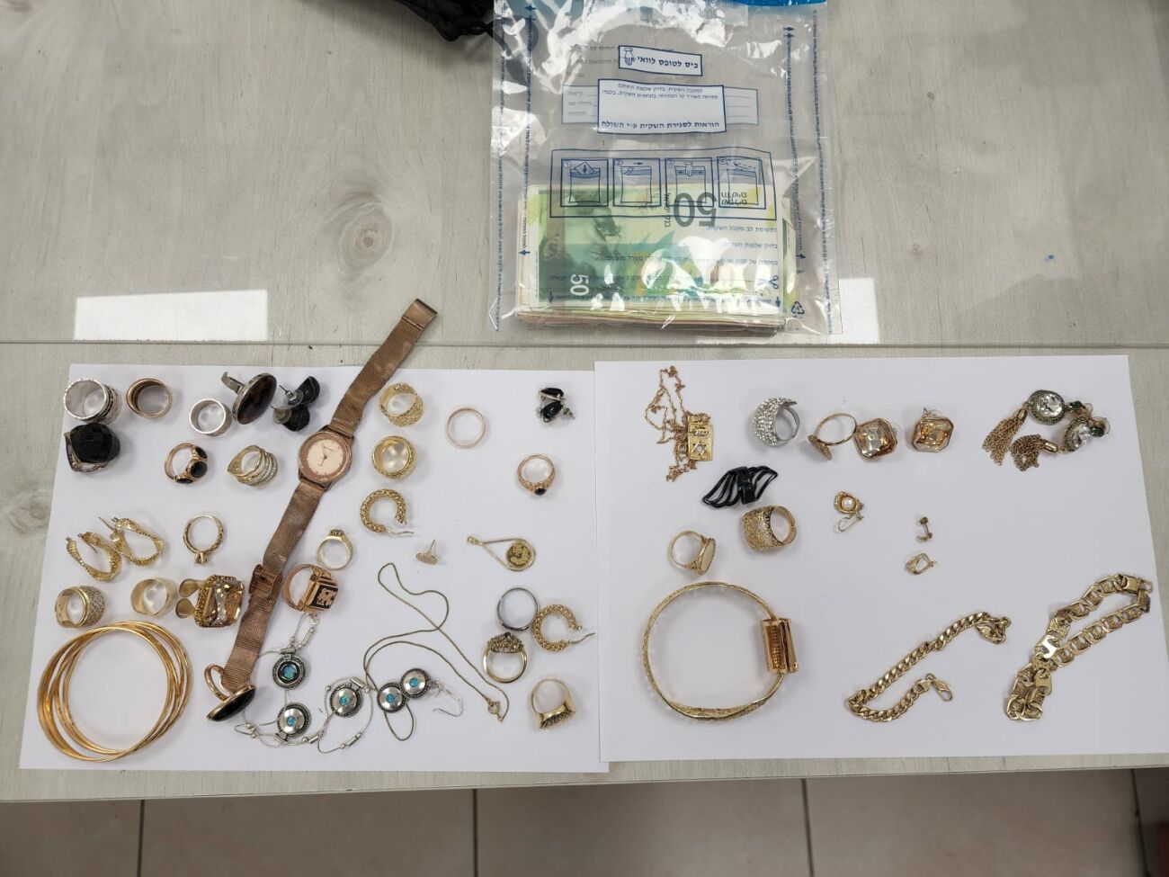 בנוסף, בחיפוש ברכבם של החשודים חשפו השוטרים תכשיטים רבים וכסף מקומי וזר כאשר עפ"י החשד נגנבו מדירות שנפרצו קודם לכן.