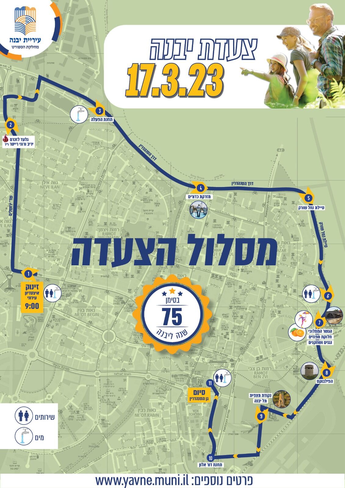 הצעדה המסורתית של יבנה ע"ש יריב ורוני רייטר ז"ל תתקיים ביום שישי 17/3/23 בין השעות 9:00-13:00.