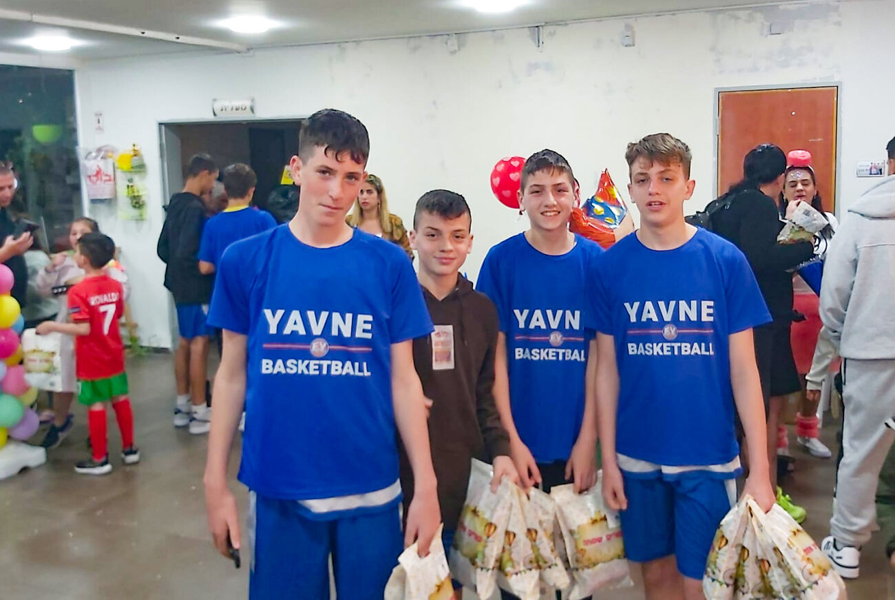שחקני קבוצת הכדורסל ,ילדים ב' מאליצור יבנה הגיעו עם משלוחי מנות לשמח ילדים בעלי צרכים מיוחדים לכבוד חג הפורים