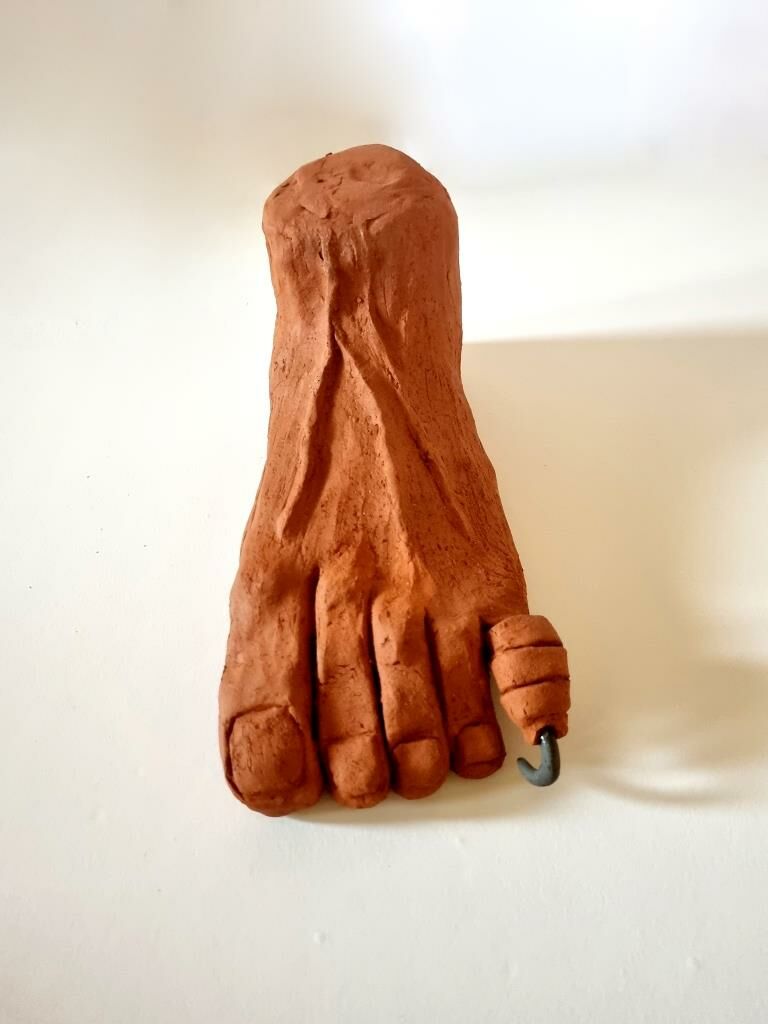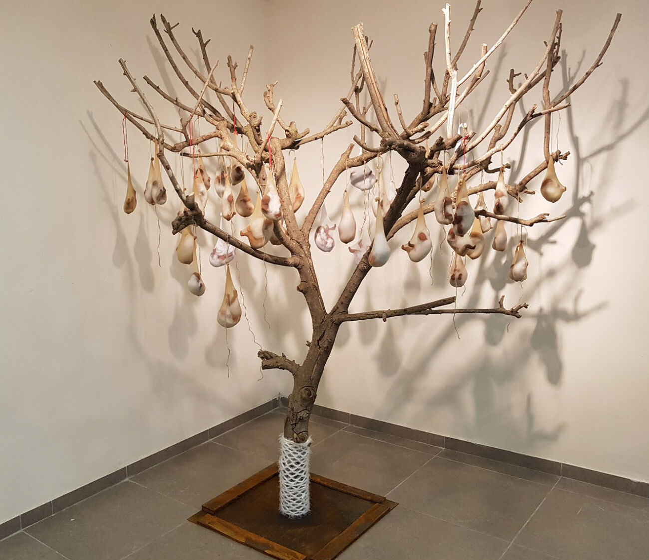 במיצב מוצגות אלונקות הנושאות כיכרות לחם, שטיח אשר מורכב ממאות יחידות חומר המתארות דימוי של תינוק מכורבל, סדרה של פסלי חומר מתארים שינויים מבניים החלים בכף רגלו של אדם מבוגר עד כדי הפיכתה לרגל ניצית . פירות מפתיעים תלויים על ענפי העץ שבמייצב .