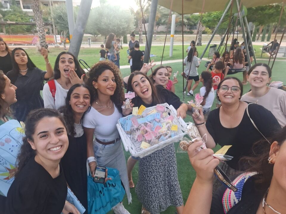 בנות השירות מגרעין יבנה חילקו אמש דובשניות ,פתקי שנה טובה וחיוך ענק לעוברים ושבים ביבנה לקראת תחילתה של שנת תשפ"ד