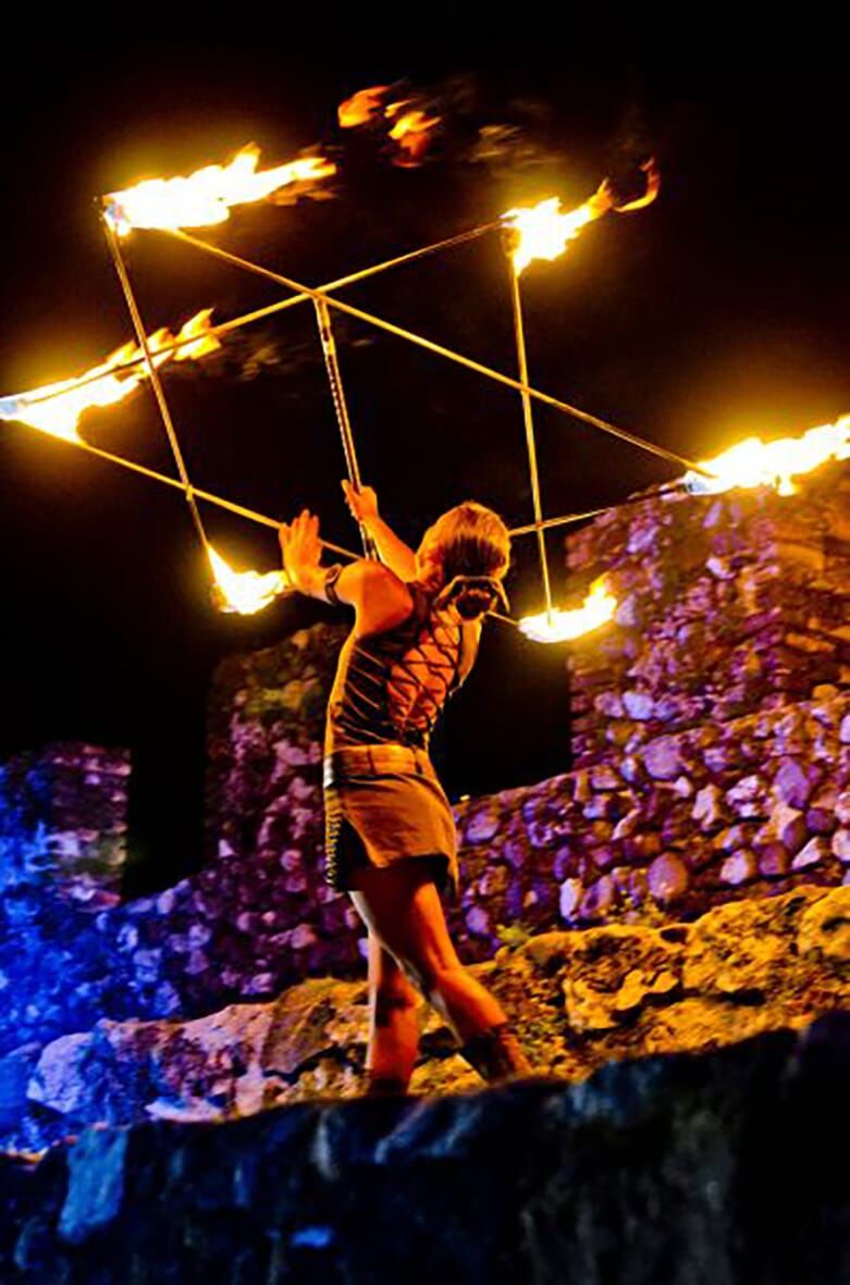 מופע אש שילוב להטוטי אש ייחודיים עם אקרובטיקה וריקוד בביצוע אומני האש הטובים ביותר בארץ. מופע אנרגטי וסוחף, חוויה עוצמתית לקהל. כל יום בשעה 19:30 לפני תחילת המופע המרכזי.