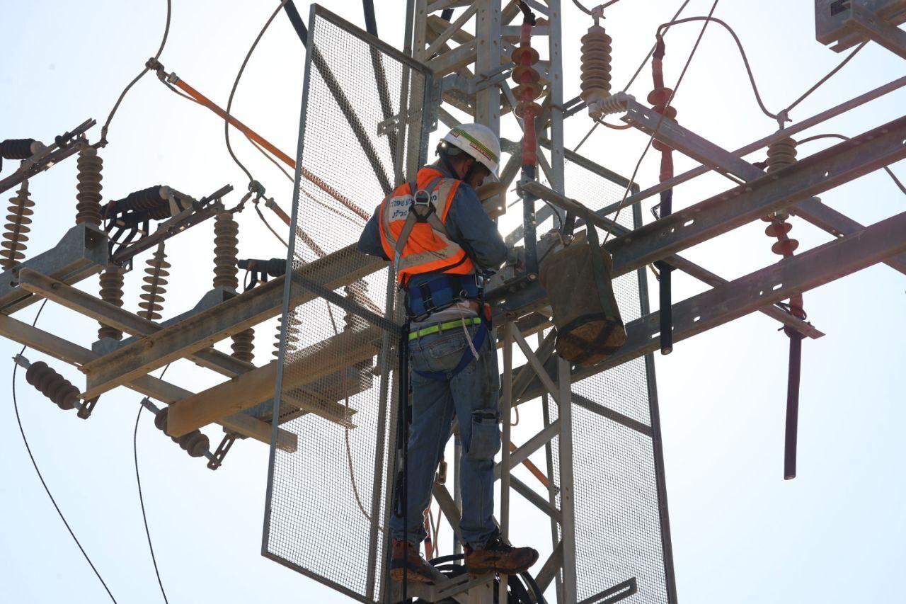 בתמונות, עובדי חברת החשמל בביצוע עבודות בעיר.