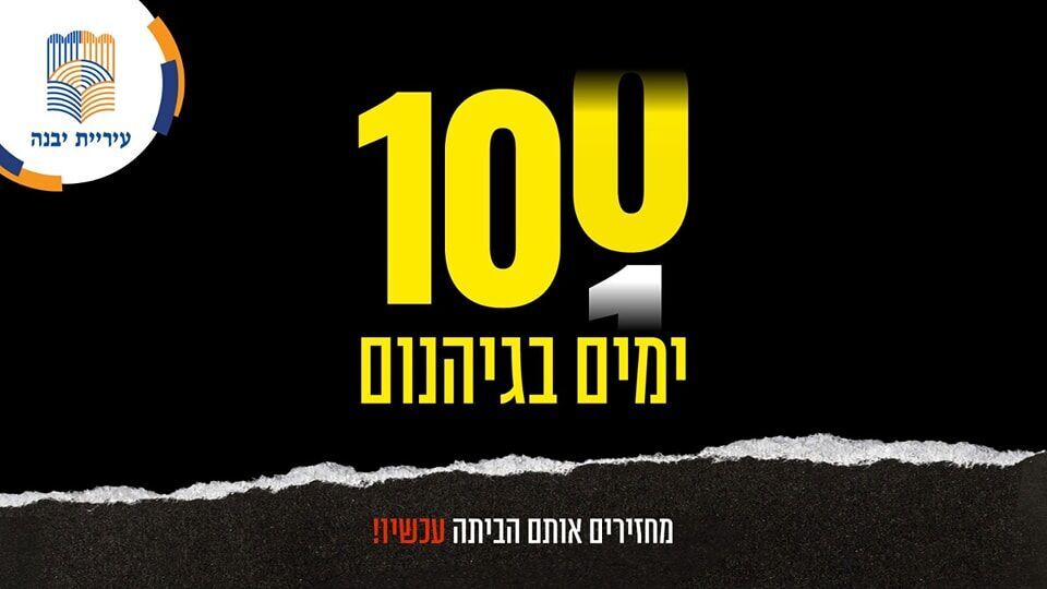 לכן, כדי להפגין סולידריות עם החטופים ומשפחותיהם, עיריית יבנה לצד רשויות מקומיות רבות וארגונים נוספים במשק יעצרו ל- 100 דקות, להזדהות, בסימן 100 ימים בשבי בעזה, ולתמיכה בבני משפחותיהם.