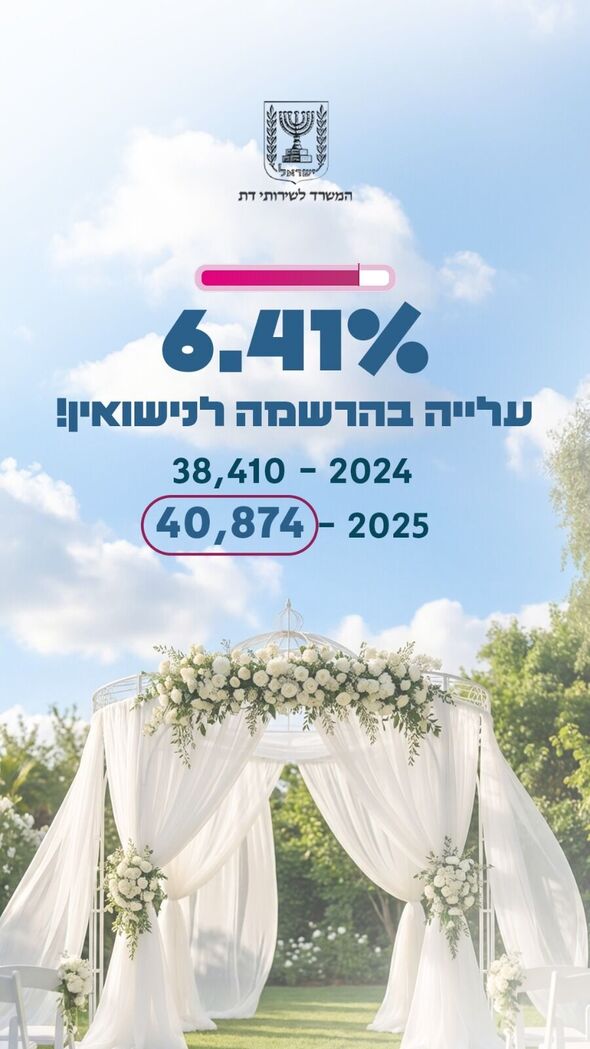 המשרד לשירותי דת פרסם את דו"ח סיכום שנת 2025, המציג עלייה כללית של 6% ברישום לנישואין ברחבי הארץ. מנתוני הדו"ח עולה תמונת מצב אופטימית גם בנס ציונה, בה נרשמו 140 זוגות לנישואין במהלך השנה החולפת.