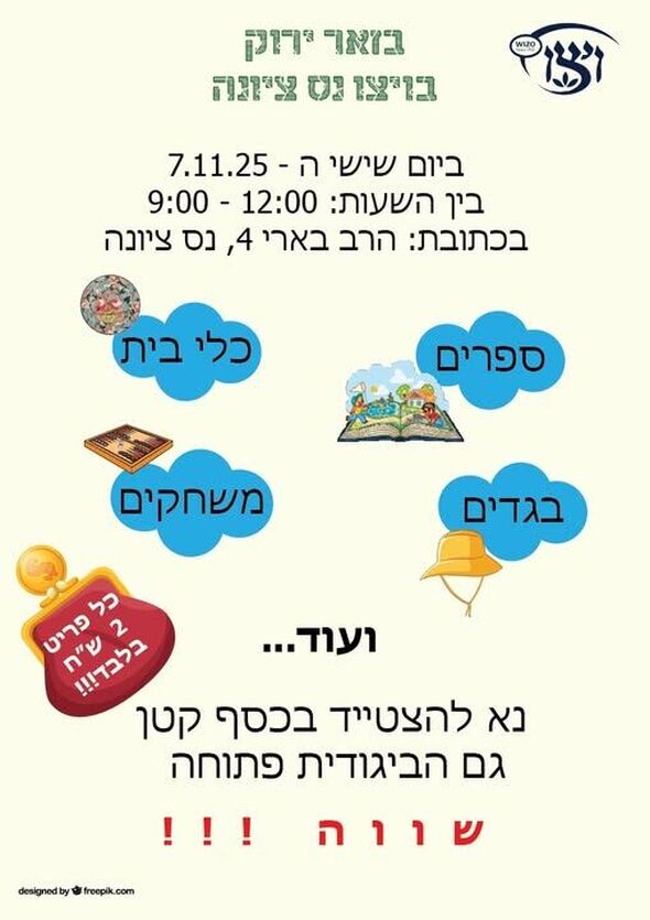 ביום שישי 7.11 יתקיים בזאר ירוק עם מכירת ספרים, כלי בית ועוד בויצו נס ציונה