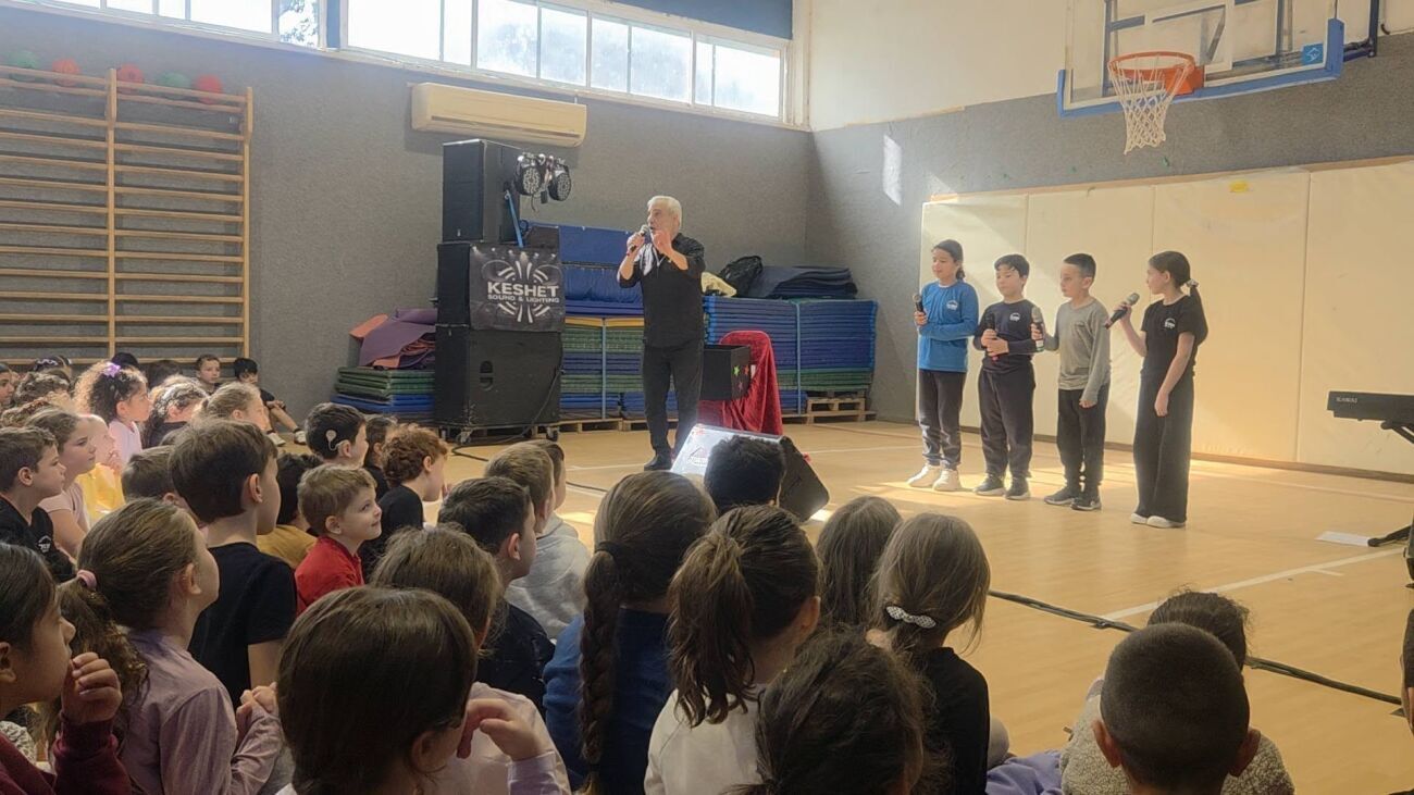 תלמידי שכבות א'-ג' בבית הספר אשכול בנס ציונה ציינו את שבוע השפה העברית במופע "כל המילים השמחות" של אסף אשתר