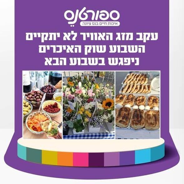 הודעה לתושבי נס ציונה: שוק האיכרים במתחם הספורטנס לא יתקיים השבוע (שישי) בעקבות מזג האוויר הצפוי