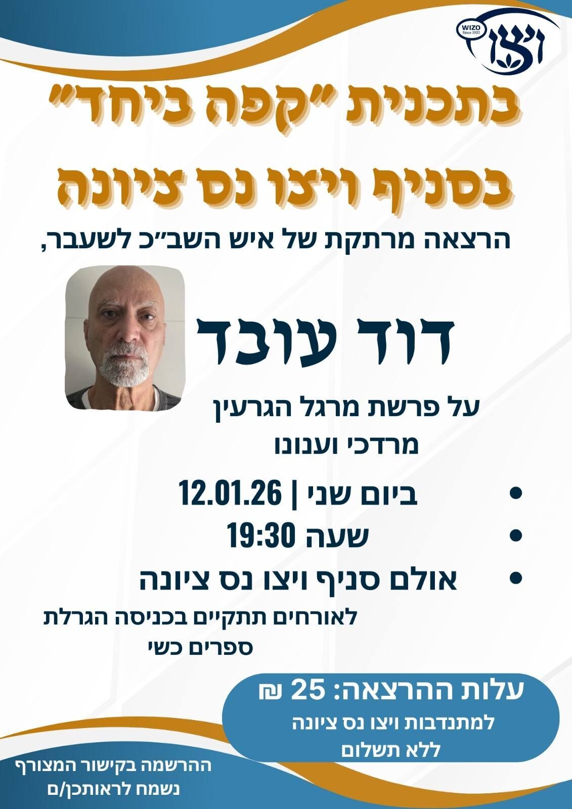 סניף ויצו נס ציונה מקיים השבוע שני אירועי תרבות והעשרה לקהל הרחב, הכוללים הרצאות מרתקות ופעילויות נוספות.