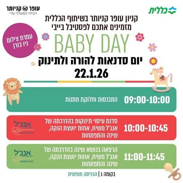 פסטיבל בייבי בשיתוף כללית מגיע לקניון עופר קניותר בנס ציונה ביום חמישי ה-22.01.26: סדנאות, הרצאות, מתחם צילום ומתנות למשתתפים