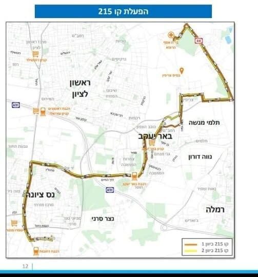 בשורה לתושבי נס ציונה: קו אוטובוס חדש (215) יחבר את העיר לתחנת הרכבת באר יעקב ולבית החולים אסף הרופא בתדירות של כל 20 דקות בשעות השיא
