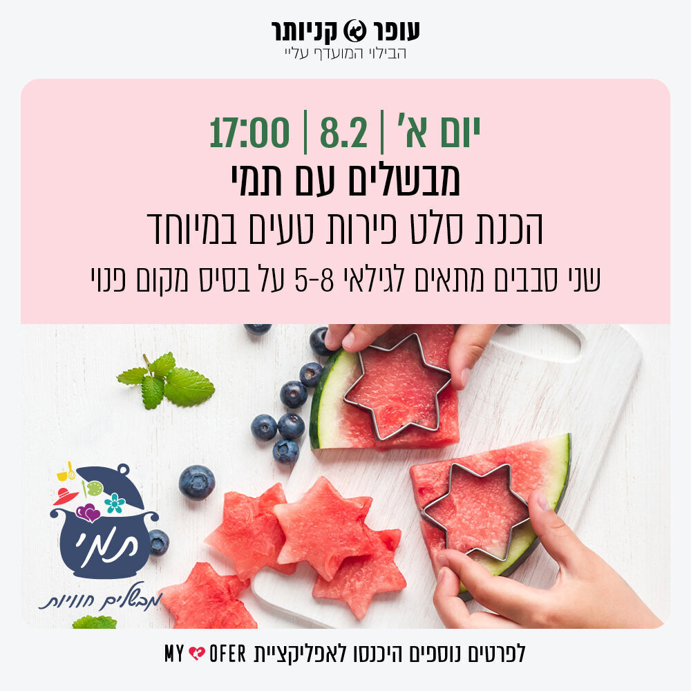 השבוע תתקיים פעילות לילדים בקניון עופר קניותר בנס ציונה, במסגרת המיזם "מבשלים עם תמי".