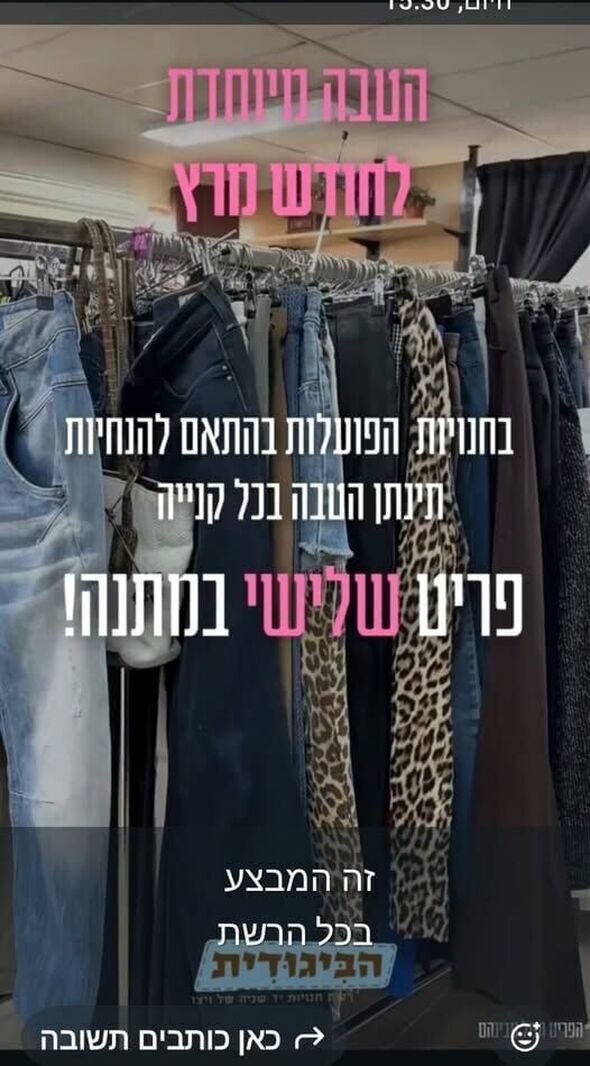מבצע חודש מרץ בביגודית ויצו בנס ציונה: פריט שלישי במתנה בכל קנייה