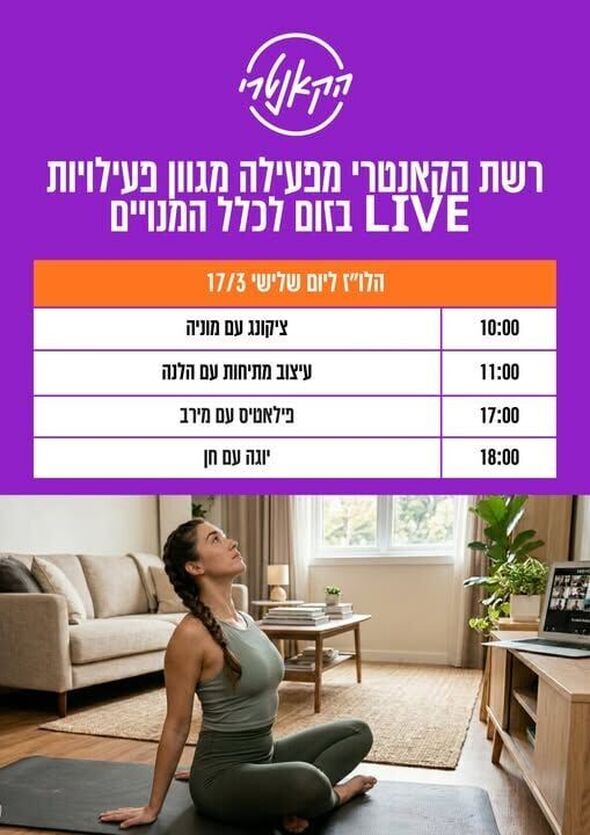 רשת הקאנטרי בנס ציונה מציעה מגוון אימוני כושר בשידור חי למנויים - יום שלישי, 17 במרץ