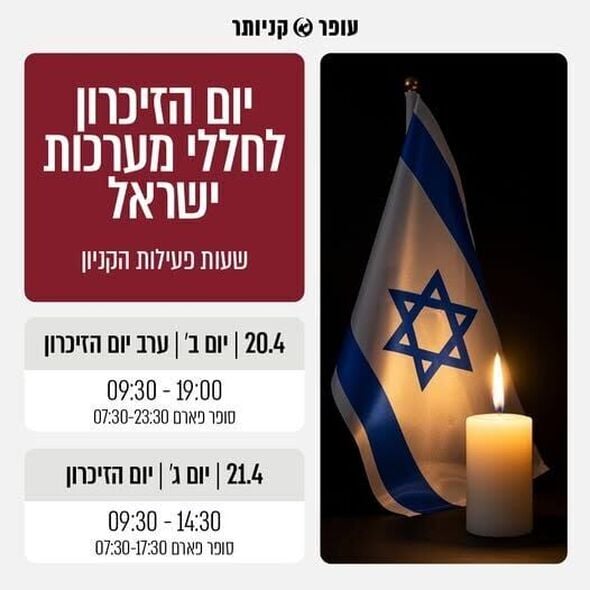 שעות הפעילות של עופר קניותר בנס ציונה בערב יום הזיכרון וביום הזיכרון (20-21 באפריל)