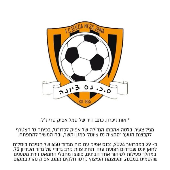 אות זיכרון על המגרש: סקציה נס ציונה תשנה את לוגו המועדון לכתב ידו של סמ"ל אפיק טרי ז"ל שנפל בעזה