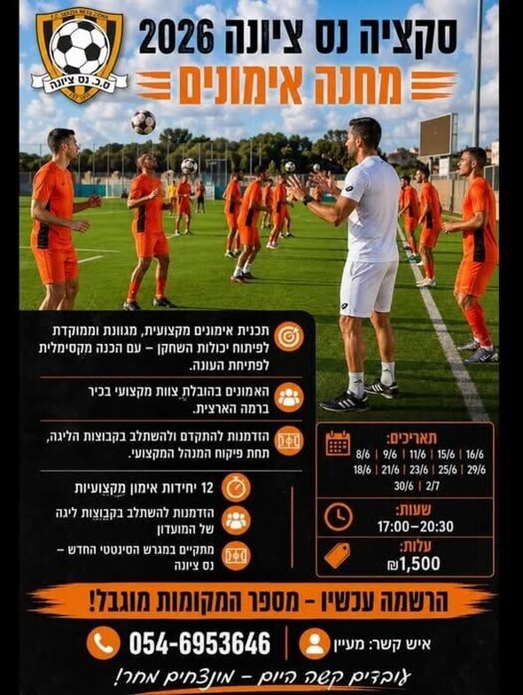 החל מה-8 ביוני: מועדון הכדורגל סקציה נס ציונה יקיים מחנה אימונים מקצועי לקיץ 2026 - כל הפרטים