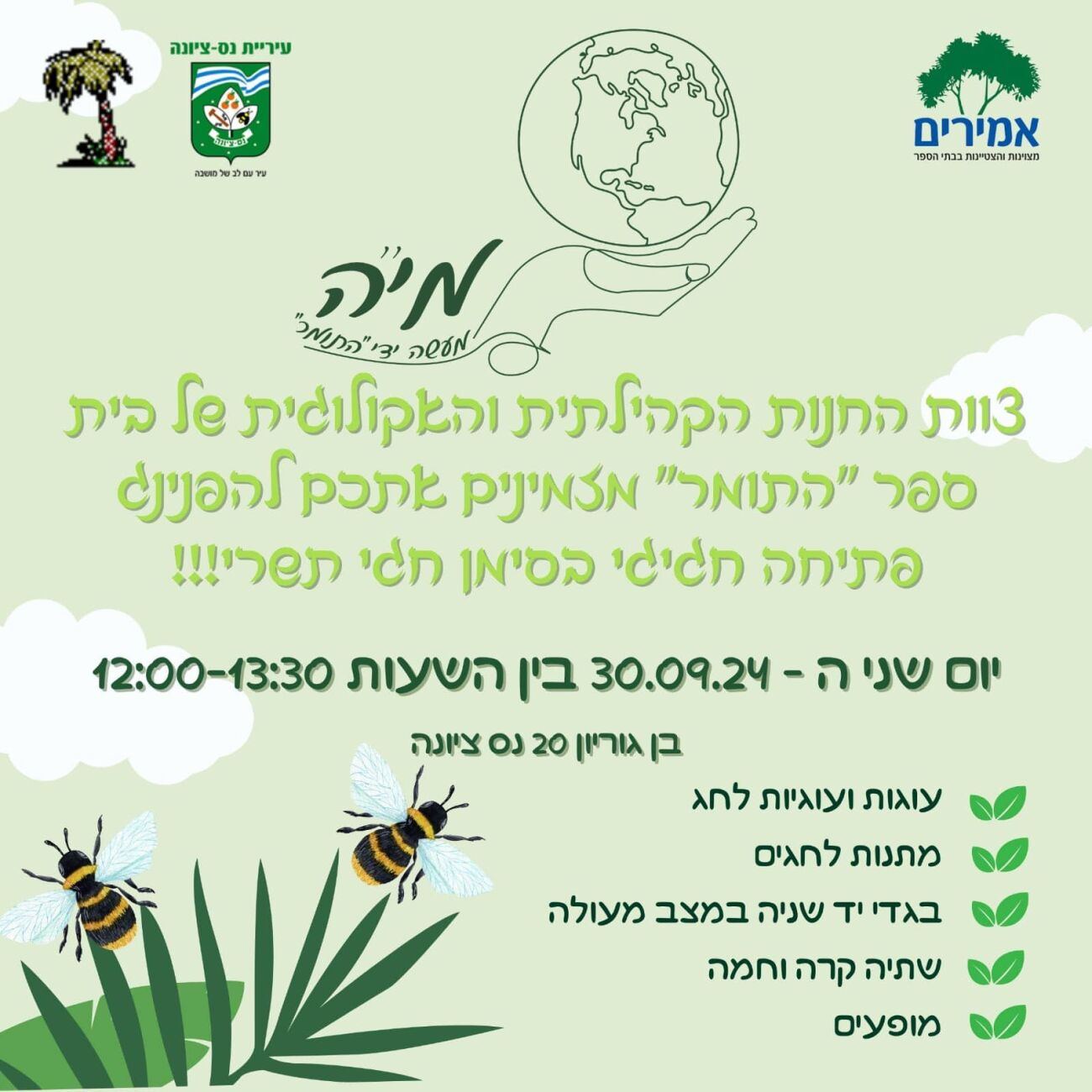 פתיחת החנות הקהילתית והאקולוגית החדשה בבית הספר "התומר" בנס ציונה ב-30 בספטמבר 2024: הציבור מוזמן