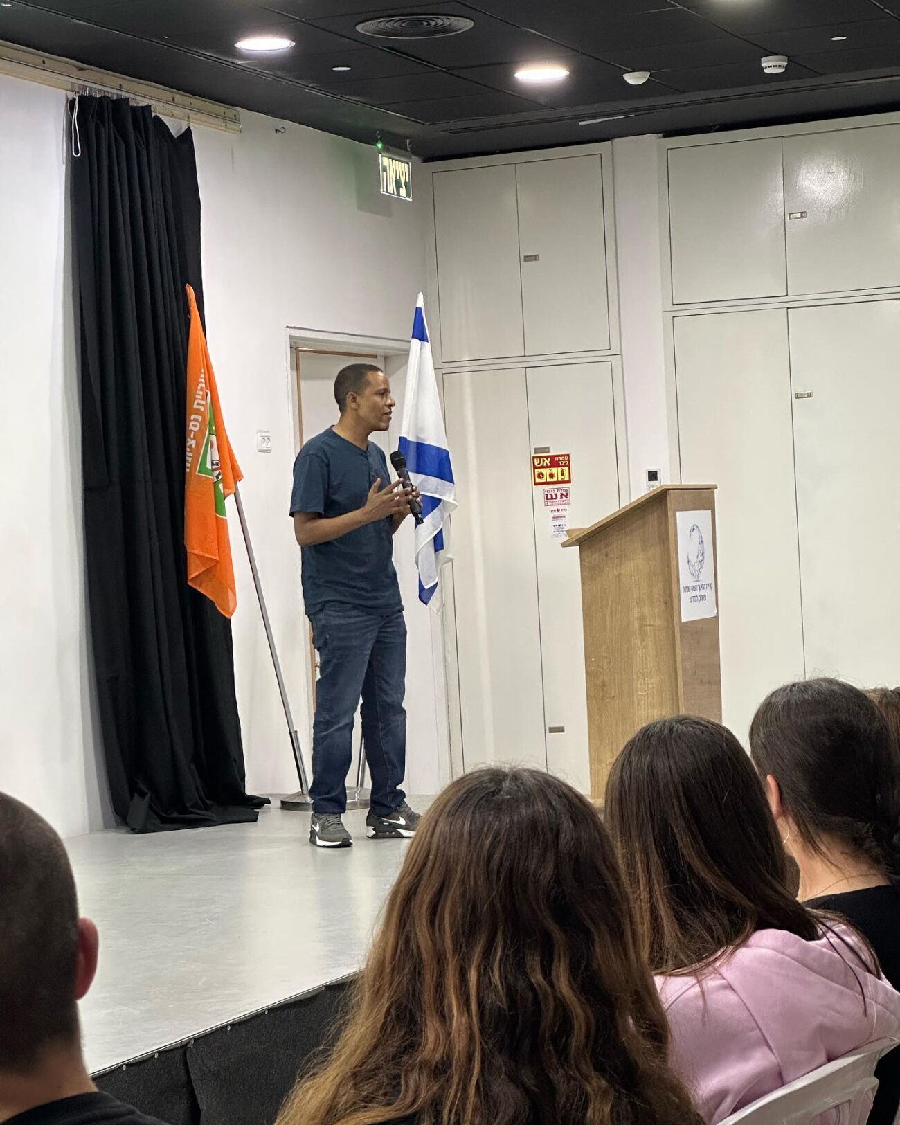 ברהנו טגניה העביר הרצאה על אירועי השבת השחורה במסגרת שבוע זיכרון לאירועי ה-7 באוקטובר בקריית החינוך "פארק המדע" בנס ציונה