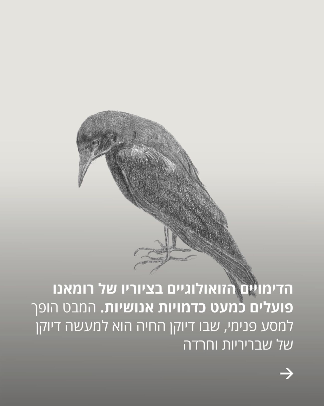הדימויים הזואולוגיים ציוריו של רומאנו פועלים כמעט כדמויות אנושיות, כאשר דיוקן החיה הוא למעשה דיוקן של שבריריות וחרדה. מדובר במסע פנימי שבו העין מתפקדת כעדשה המסמנת מטרה. בסדרת הציורים בולטת היצירה "איל נכחד", בה המסגרת העגולה מתפקדת כעדשה של משקפת או מצלמה - סימון שמטעין את המבט במשמעות כפולה של משיכה ושל איום.