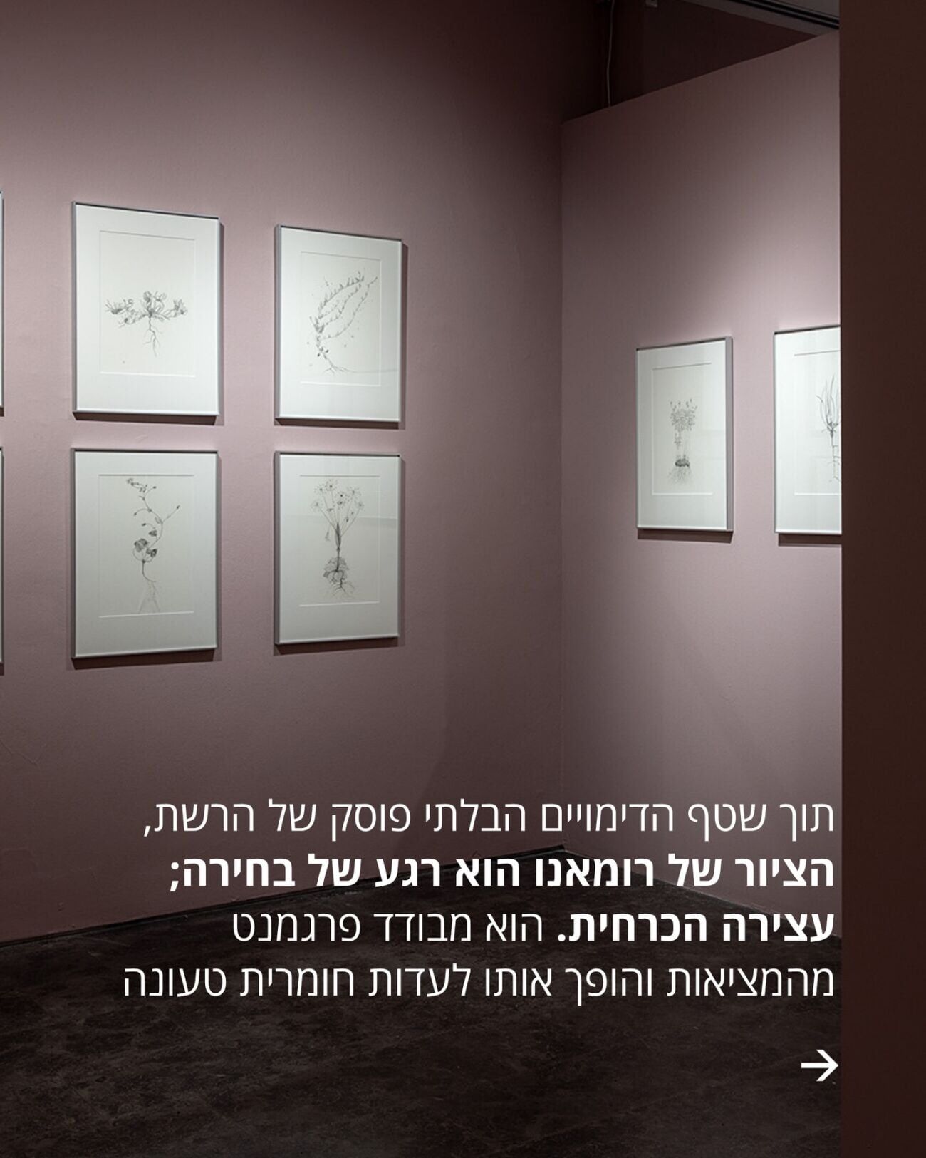 ביצירותיו, המבט הבלשי של רומאנו לוכד את הטבע מבעד לעדשה, והופך אותו לאיגרת דחופה מהעבר אל ההווה. בתוך שטף הדימויים הבלתי פוסק של הרשת, הציור של רומאנו מציע רגע של בחירה ועצירה הכרחית; הוא מבודד פרגמנט מהמציאות והופך אותו לעדות חומרית טעונה.
