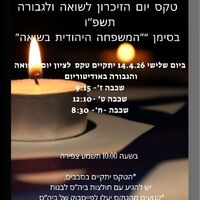 לקראת יום הזיכרון לשואה ולגבורה תשפ"ו, מרכז קהילתי רמת ורבר בפתח תקווה מזמין את הקהל הרחב להשתתף בטקס ואירוע "זיכרון בסלון". האירוע ייערך היום, יום שלישי, 14 באפריל 2026, בשעה 10:00.