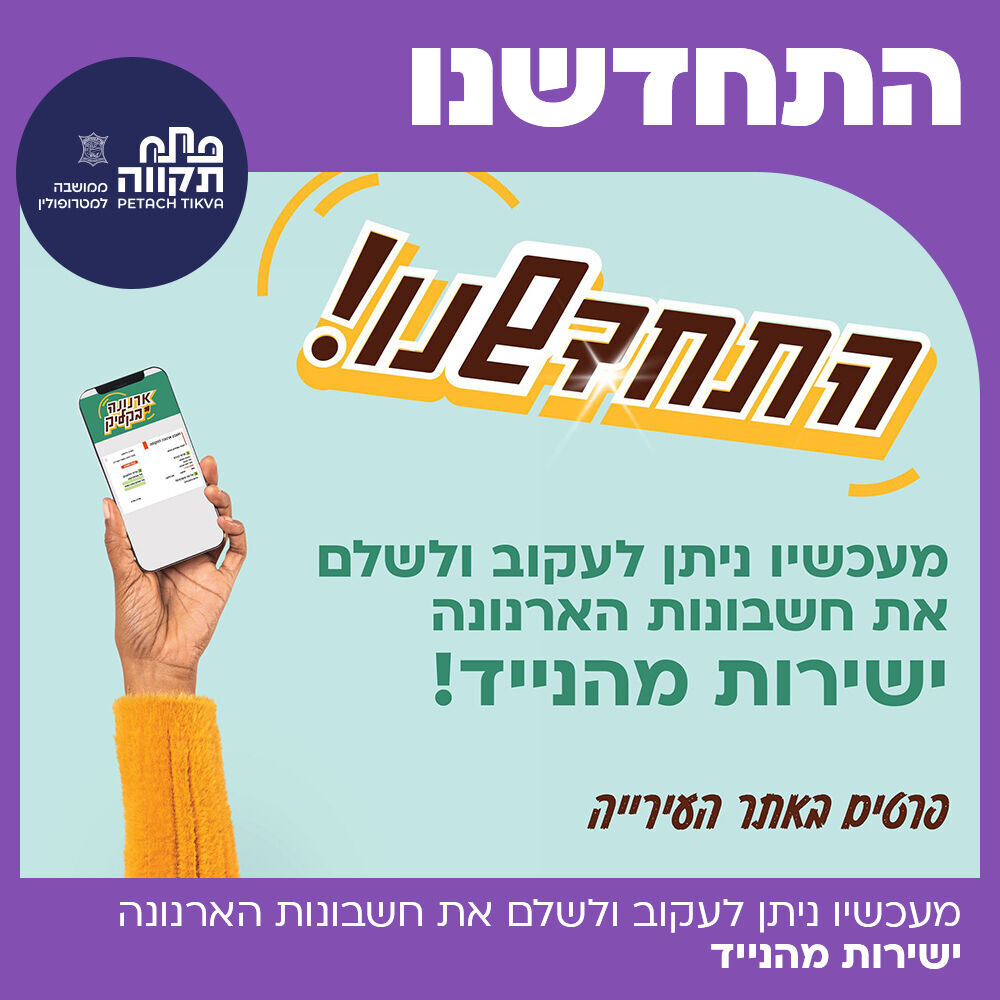 - שירותים דיגיטליים: מעתה ניתן לצפות, לעקוב ולשלם חשבונות ארנונה בצורה נגישה וקלה גם מהנייד.