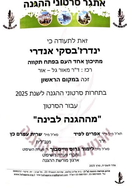 מגמת הקולנוע של קמפוס "אחד העם" זכתה במקום הראשון בפסטיבל סרטי "ההגנה" עם סרטו של התלמיד אנדרי ינדרז'בסקי, "מההגנה לבינה"
