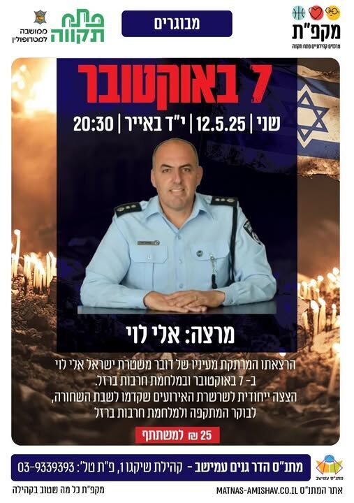 דובר המשטרה לשעבר, מר אלי לוי, יגיע למתנ"ס הדר גנים עמישב להרצאה מרתקת.