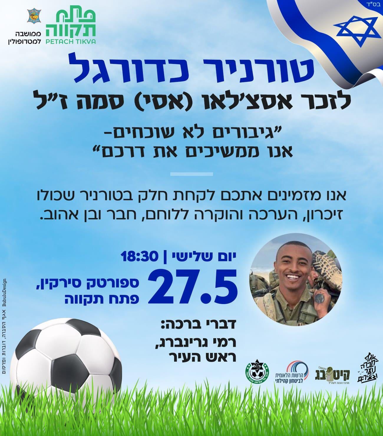 טורניר כדורגל לזכרו של אסצ׳אלו (אסי) סמה ז״ל, לוחם בגדוד 931 של הנח״ל שנפל בקרב בעזה, נערך אתמול בפתח תקווה.