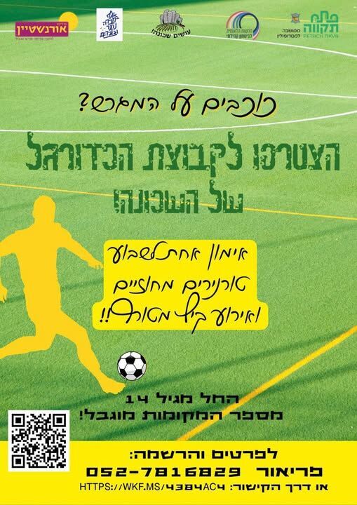 יוזמת 'עושים שכונה', בשיתוף אגף הנוער והרשות לביטחון קהילתי, מקימה קבוצת כדורגל חדשה בפתח תקווה. הקבוצה מיועדת לבני נוער מעל גיל 14 שאוהבים כדורגל ומעוניינים להצטרף למסגרת ספורטיבית וחברתית.
