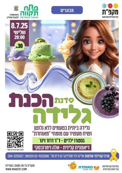פתח תקווה: סדנה להכנת גלידות בריאות ללא גלוטן להורים וילדים תתקיים ב-8.7.2025