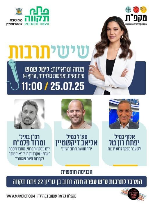 שישי תרבות בפתח תקווה: ליטל שמש תראיין את האלוף במיל' יפתח רון טל, סא"ל במיל' אליאב דיקשטיין ורס"ן במיל' נמרוד פלמ"ח ביום שישי 25.7