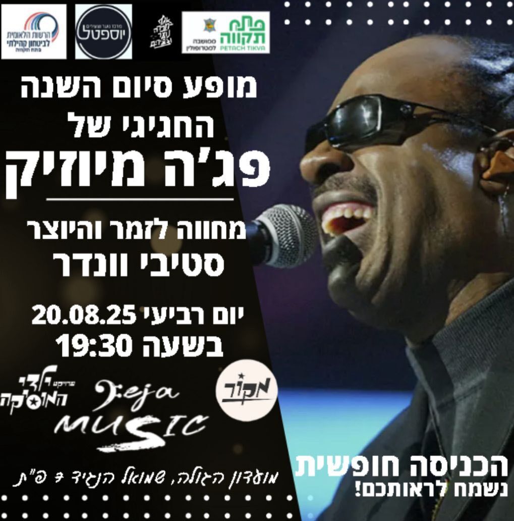 מופע סיום חגיגי של פ'גה מיוזיק בפתח תקווה יוקדש לסטיבי וונדר ויתקיים ביום רביעי, 20.8.25 במועדון הגולה