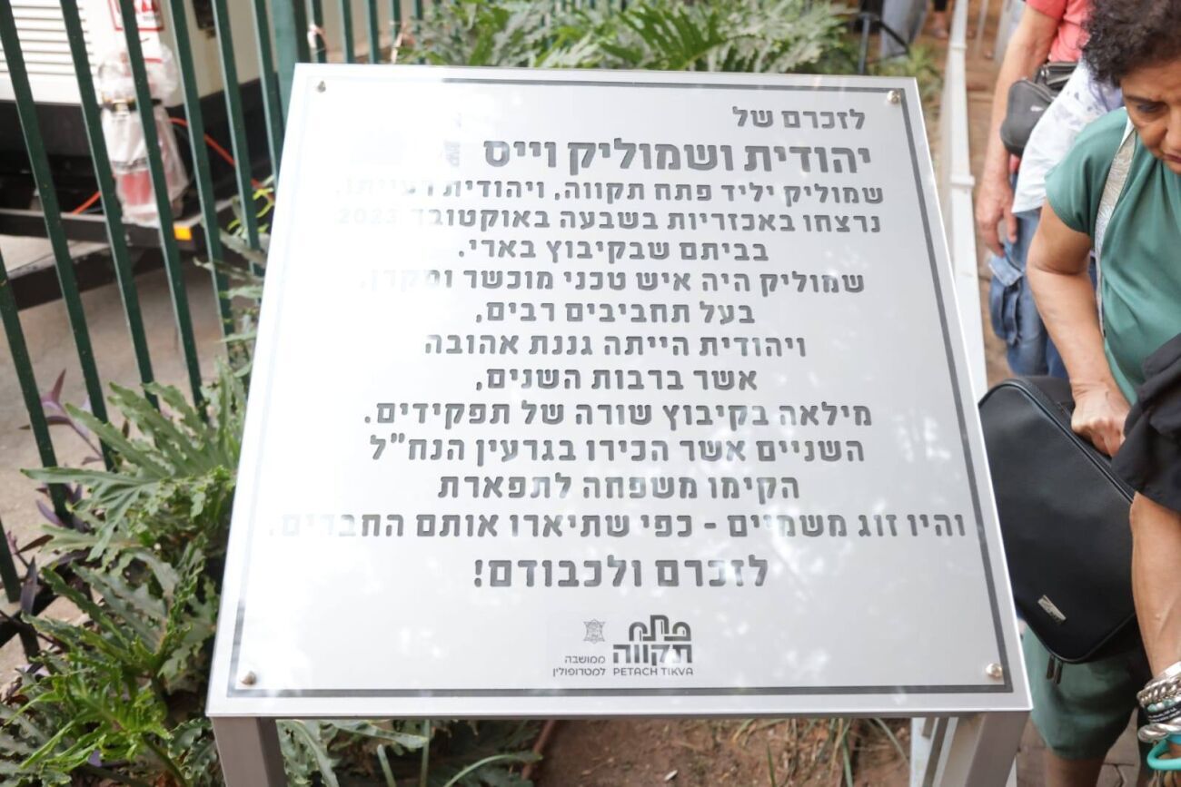 טקס הנצחה נערך לזכרם של יהודית ושמוליק וייס ז"ל, שנרצחו בקיבוץ בארי ב-7.10 נערך בסמוך לבית ילדותו בפתח תקווה