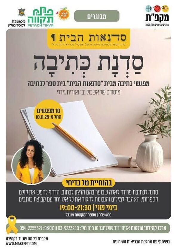 פותחים דף חדש בפתח תקווה: סדנת כתיבה אישית של 'סדנאות הבית' תתקיים במרכז קהילתי עולמות החל מה-10.11.25