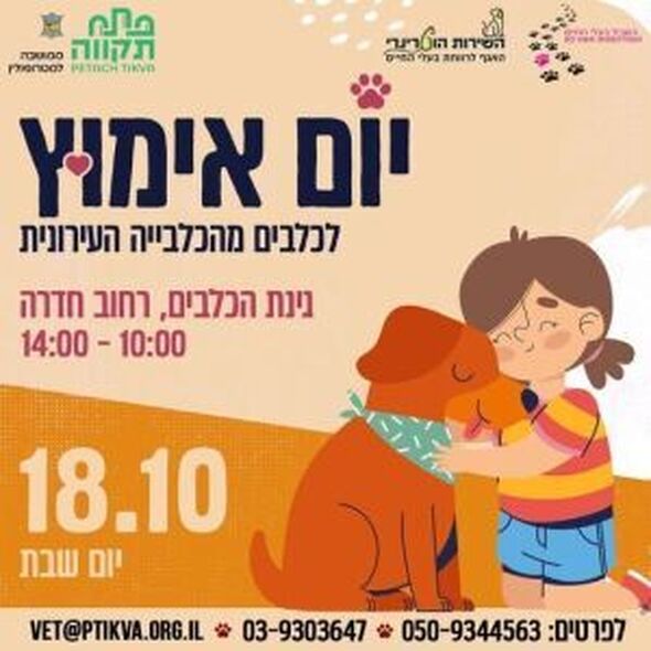 ביום שבת 18.10 יתקיים יום אימוץ בגינת הכלבים ברחוב חדרה פתח תקווה