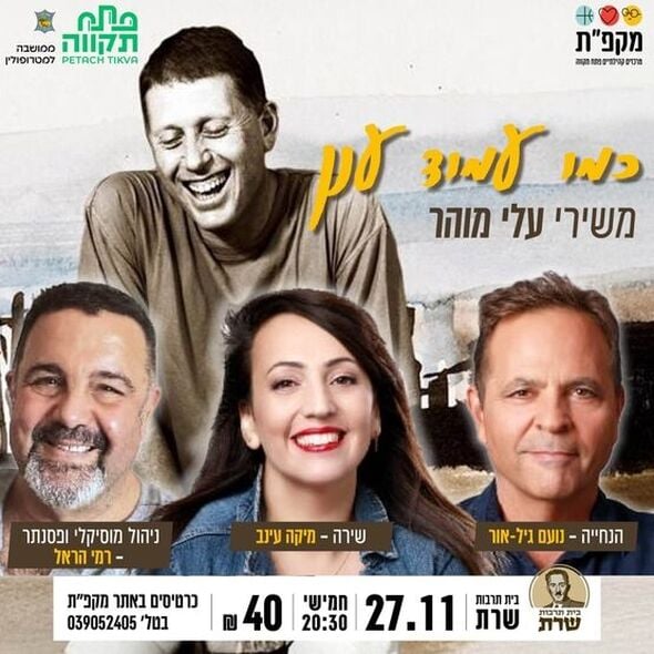 ביום חמישי 27.11 יתקיים מופע כמו עמוד ענן -משירי עלי מוהר בבית תרבות שרת פתח תקווה