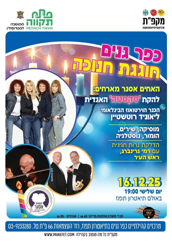 חוגגים חנוכה בכפר גנים פתח תקווה: האחים אסנר יארחו את להקת 'סקסטה' והכנר ליאוניד רוטשטיין במופע מיוחד ב-16.12.25