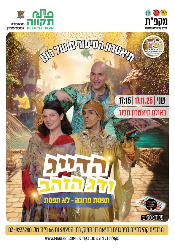 מרכזי קהילת כפר גנים מציגים: ההצגה 'הדייג ודג הזהב' תתקיים ב-17.11.25 באולם תיאטרון 'תפוז' בפתח תקווה