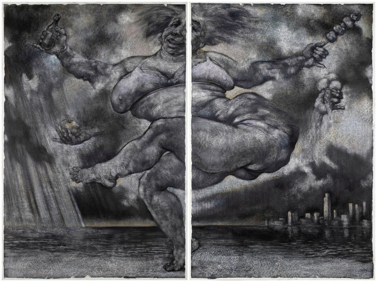 סשה אוקון, טינה קאלישר רוקדת על שפת הים, טכניקה מעורבת, 2024. צילום שי הלוי