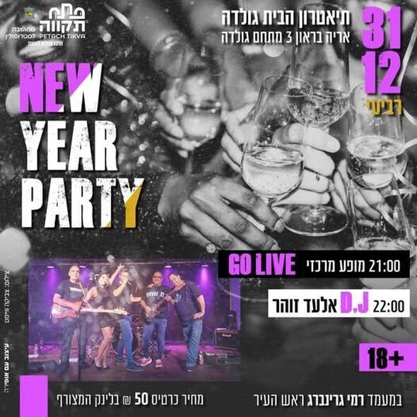לרגל תחילת השנה האזרחית החדשה, תתקיים מסיבת להיטים מכל הזמנים בתיאטרון הבית גולדה בפתח תקווה. האירוע יכלול הופעה של להקת GoLive, המתוארת כסוחפת ומלאת אנרגיה.