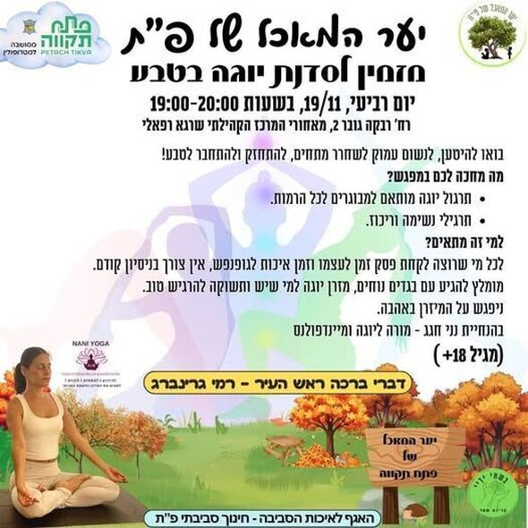 מחר (רביעי 19.11) תתקיים סדנת יוגה בטבע ללא עלות ביער המאכל בפתח תקווה
