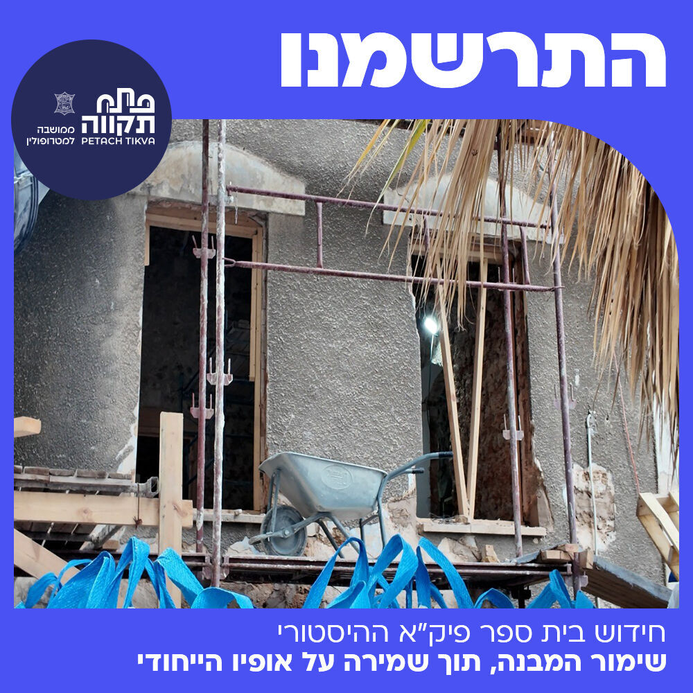 בגזרת מוסדות החינוך, בית הספר ההיסטורי פיק"א עובר הליך חידוש משמעותי. העבודות כוללות את שימור המבנה לצד ביצוע התאמות לתקני בטיחות ונגישות, תוך הקפדה על שמירת אופיו הייחודי של המוסד ותרומתו להיסטוריה החינוכית של העיר.